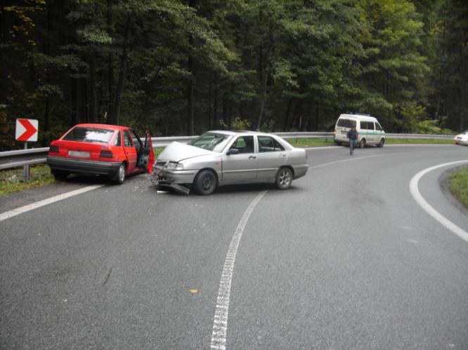Středa 1.10.2008 15,35 hodin, to je čas, kdy na silnici vedoucí ze Železného Brodu došlo k další dopravní nehodě. Tentokrát havaroval muž, jedoucí s vozidlem Ford Escort. Muž jel ve směru od Tanvaldu na Železný Brod. Vlivem nepřizpůsobení rychlosti nestačil na mokré vozovce dobrzdit, vjel do protisměru a přední části narazil do protijedoucího vozidla Seat Toledo. Vozidlo Ford bylo nárazem dále odhozeno na svodidla. Při nehodě nedošlo ke zranění. Vzniklá škoda činí 50 000 Kč.. Provinilý řidič si z nehody odnáší blokovou pokutu ve výši 2 000 Kč.