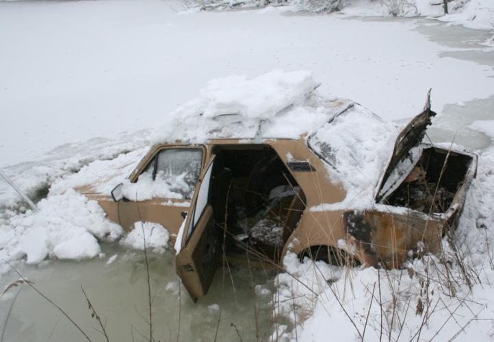 Auto, jehož se měl chlapec zmocnit v průběhu Silvestra, však skončilo poté, co se v něm měl podezřelý s dalšími mladíky povozit lesem, v Košťálovickém rybníku (ten se nachází mezi ulicemi Šenovskou a Rudnou v Šenově). Vozidlo bylo v době nalezení policisty najeto v rybníku až po zadní nápravu, přimrzlé na hladině několikacentimetrovou vrstvou ledu a pokryté několika desítkami centimetrů sněhu. Již při prvním pohledu bylo zřejmé, že část vozidla je navíc ohořelá. Vzhledem k výše uvedeným okolnostem nálezu byli k vyproštění i zajištění vozidla povoláni na pomoc také hasiči. Vozidlo vytáhli z rybníku pomocí lan hasiči a odtáhli jej na konec hráze. Policisté provedli ohledání místa nálezu vozidla i předmětné „škodovky“. Dále byla provedena fotodokumentace poškozeného, ohořelého i zaplaveného auta.