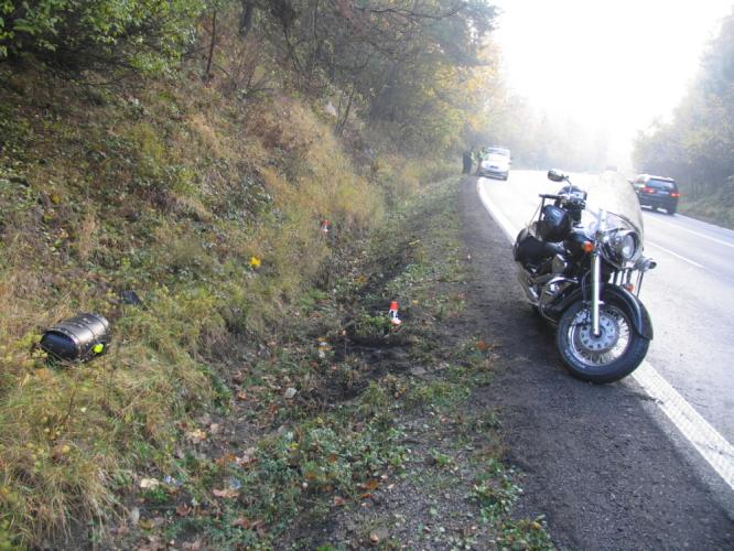 Dne 3. 11. 2011 kolem osmé hodiny ranní v úseku mezi obcemi Mohelnice a Moravská Třebová, došlo k dopravní nehodě motocyklu značky Suzuki Intruder C800. Pětačtyřicetiletý muž z Havířova projížděl táhlou levotočivou zatáčku a při náklonu motocyklu dostal na mokrém povrchu smyk, který nezvládl a vyjel mimo silnici, kde havaroval. Při nehodě se lehce zranil 44letý spolujezdec z Havířova, který byl převezen k ošetření do nemocnice v Šumperku. U řidiče byla provedená dechová zkouška s negativním výsledkem. Celková škoda na motocyklu a oblečení činí 50000 Kč.