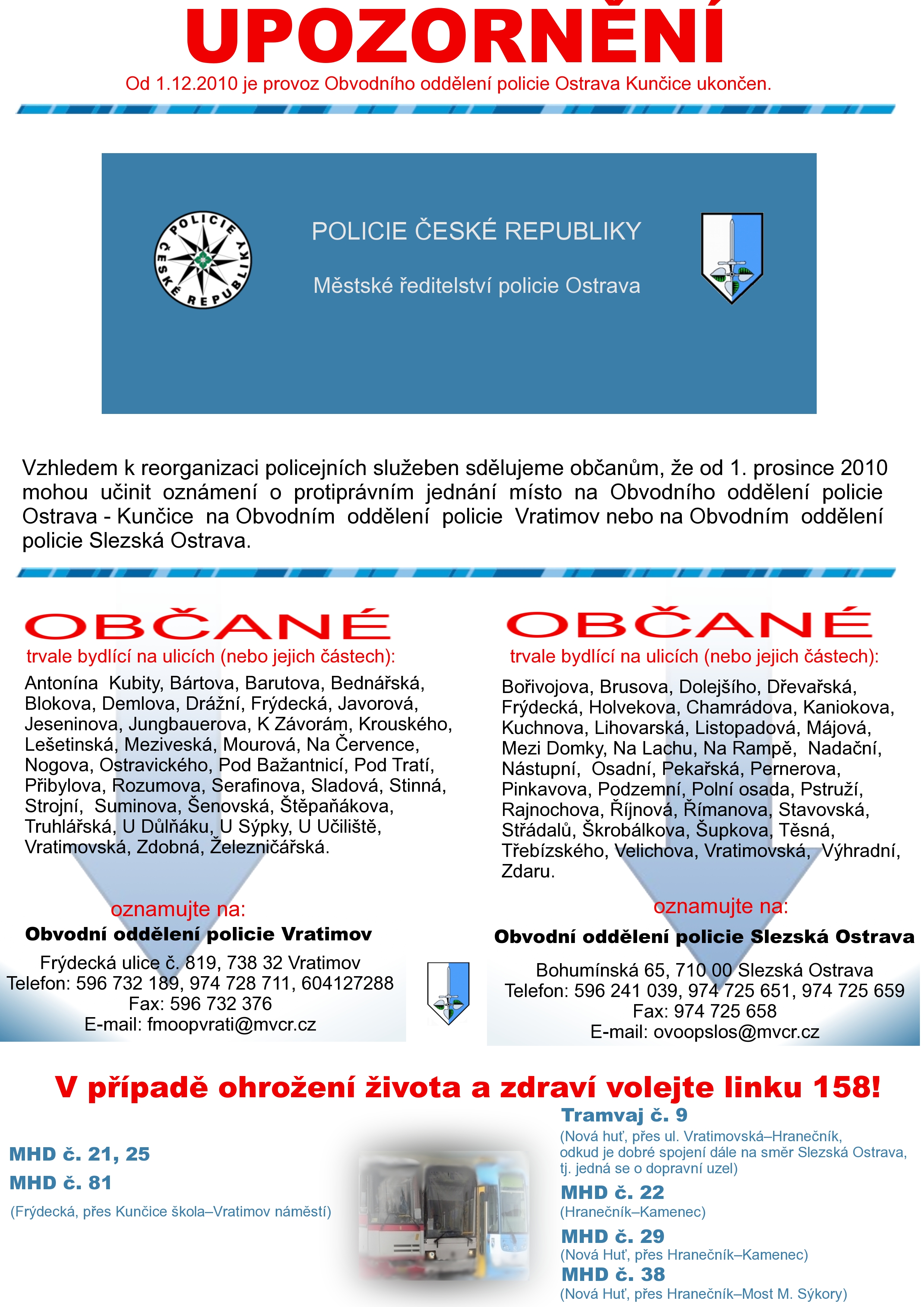 Mřp Ostrava - 30.11.2010 Obvodní oddělení policie Ostrava Kunčice ukončí provoz
