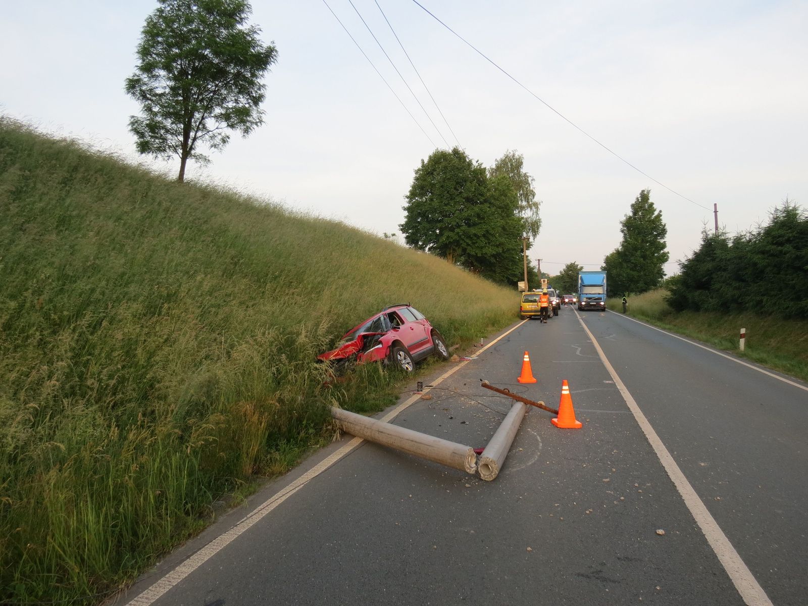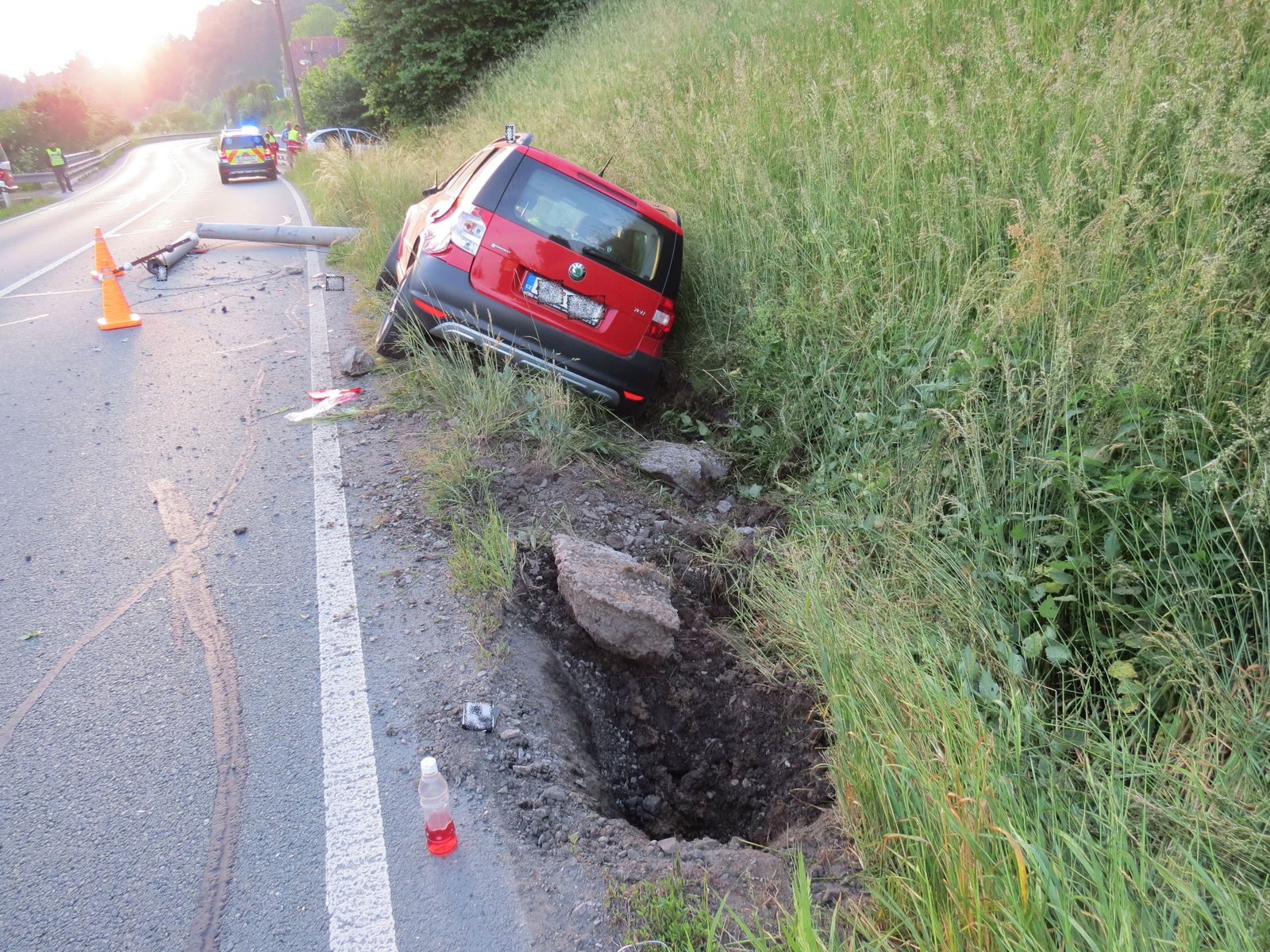 Dnes 11. 6. časně ráno v 4:40 jel řidič vozu zn. Škoda Yeti po silnici č. I/11 od Vamberku směrem na Rybnou nad Zdobnicí. Během jízdy se zřejmě zcela nevěnoval řízení. S autem vjel vpravo mimo komunikaci do silničního příkopu, kde narazil do betonového sloupu elektrického vedení.