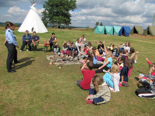 Policistky si přijeli s dětmi popovídat na téma osobní bezpečí, a to nejenom v reálném světě, jako např. co jim hrozí doma, u vody, v silničním provozu či na táboře, ale také jaké nebezpečí je mohou potkat ve virtuálním světě na internetu. Děti byly zvídavé, ptaly se na různé situace, se kterými by se mohly setkat. Velmi mile nás překvapilo, jak byly děti znalé důležitých pravidel, jak se mají zachovat, např. když se ztratí v lese. Na závěr povídání jsme dětem rozdaly drobné dárky a popřály jim hezký zbytek tábora.