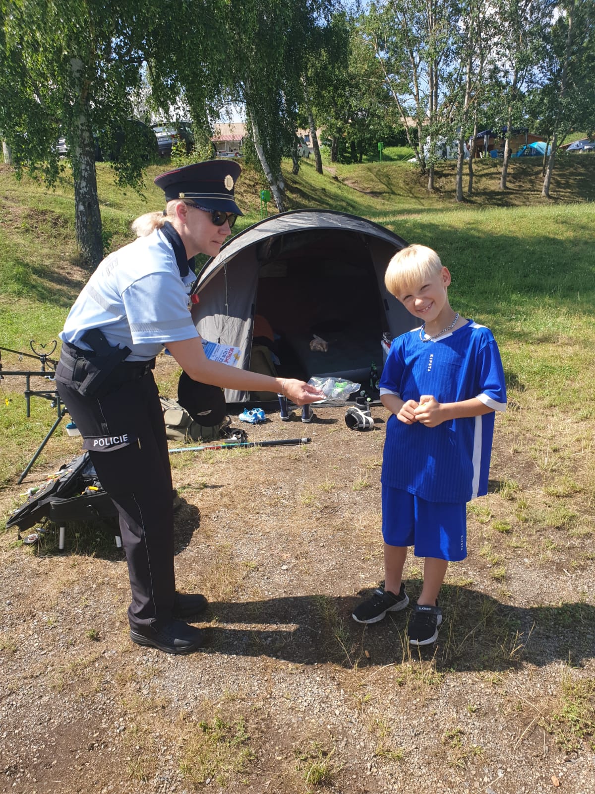 V rámci našich preventivních aktivit jsme oslovili ubytované rekreanty v kempech s upozorněním na zabezpečení svého majetku a předali jsme jim zámky na zajištění stanů. Drobné dárky jsme rozdali i dětem, a to například reflexní předměty s přáním hezkých a pohodových prázdnin.