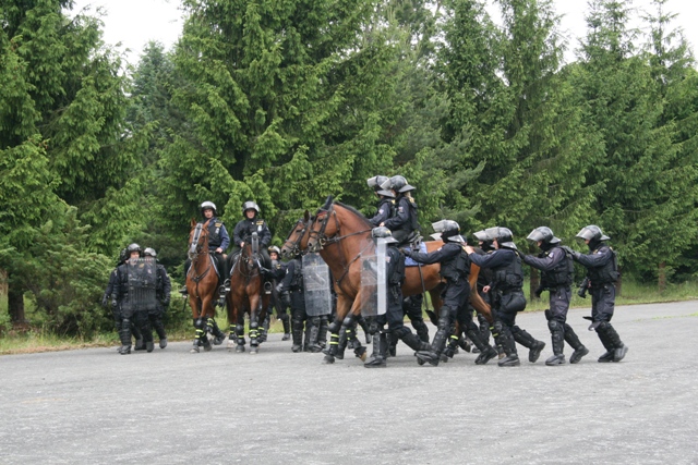 Dnes proběhlo v objektu letiště v Líních na Plzeňsku cvičení pořádkové jednotky Krajského ředitelství policie Plzeňského kraje. Jedná se již o sedmý nácvik, kdy policisté nacvičovali zákroky zaměřené na zvládnutí násilností. Tento výcvik byl ale jedinečný tím, že poprvé s policisty nacvičovali i jezdci se služebními koňmi z Oddělení služební hipologie Praha.