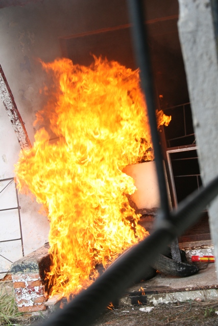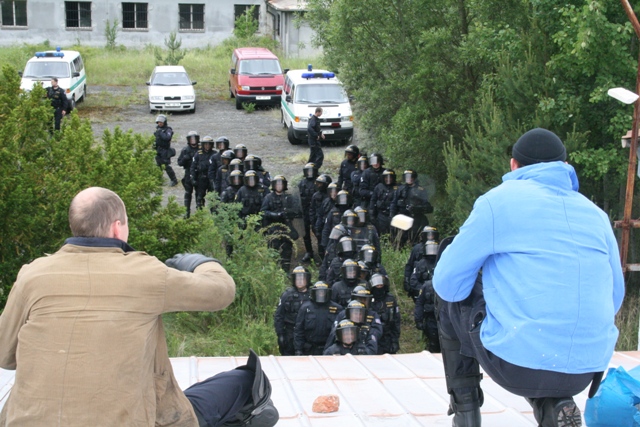 Ve druhé části měli instruktoři připravenou modelovou situaci, kdy policisté nacvičovali taktiku vstupu do objektu. Uvnitř se opět nacházeli demonstranti, kteří ztěžovali vstup do budovy například zapáleným ohněm a létajícími předměty. Při zásahu využívali policisté i služební psy a vodní stříkač. Pořádková jednotka je často využívána na různé kulturní akce, kde je předpoklad, že bude docházet k protiprávnímu jednání, a z toho důvodu byla zvolena tato modelová situace.
