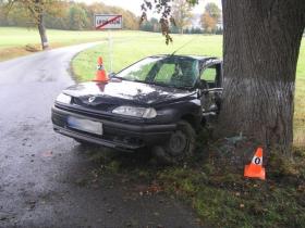 K dopravní nehodě osobního vozidla Renault Laguna, došlo v neděli 11. října v deset hodin na výjezdu z obce Lipová-lázně do Jeseníku. 20letý řidič jedoucí do Jeseníku, se v levotočivé zatáčce vyhýbal protijedoucímu vozidlu. To se mělo částečně nacházet v protisměru. Tento manévr se mladíkovi stal osudným. Pravou stranou svého vozidla najel na nezpevněnou krajnici a dostal smyk. Následně narazil do stromu, kolem kterého se otočil. Ke střetu s protijedoucím vozidlem nedošlo a druhý řidič z místa nehody ujel. Osádka naštěstí neutrpěla žádné poranění. Předběžnou škodu na vozidle poškozený vyčíslil na 60.000,- Kč.