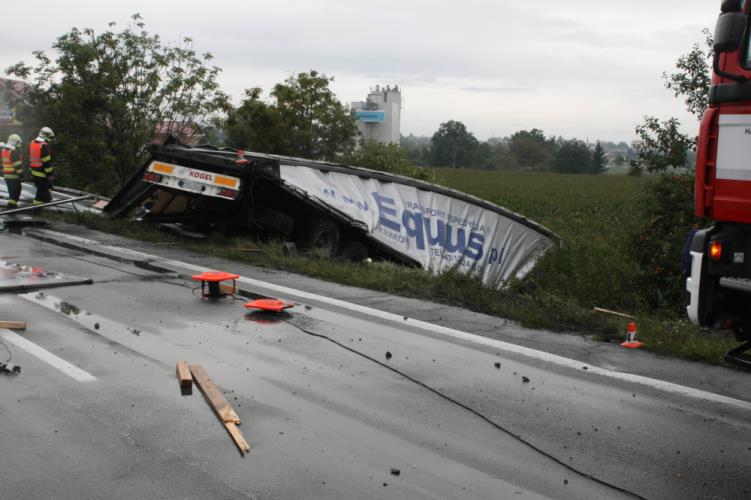 Dne 27. 8. 2014 po sedmnácté hodině došlo k dopravní nehodě na silnici číslo I/35 v km 235, 553 mezi obcemi Olomouc a Mohelnice. Sedmapadesátiletý řidič nákladního vozidla Daf z Polska se pravděpodobně nevěnoval řízení, kdy s vozidlem a přívěsem vjel na pravou krajnici. Posléze strhl řízení a uvedl vozidlo do smyku, kdy vyjel vpravo mimo komunikaci a přes svodidla sjel z travnaté meze, kde následně narazil do stromu. Na tahači vznikla hmotná škoda ve výši 1200000 Kč, na návěsu 500000 Kč, na nákladu (ocelových profilech) 200000 Kč, na živici, svodidlech, travnaté ploše a na stromech ve výši 100000 Kč. Dechová zkouška byla negativní, řidič utrpěl lehké zranění. Komunikace byla zcela průjezdná před druhou hodinou ranní dnešního dne.