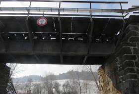 Policisté na Klatovsku opakovaně upozorňují řidiče nákladních vozidel na rizika spojená s průjezdem pod železničním viaduktem, kde je označena výška na projetí.