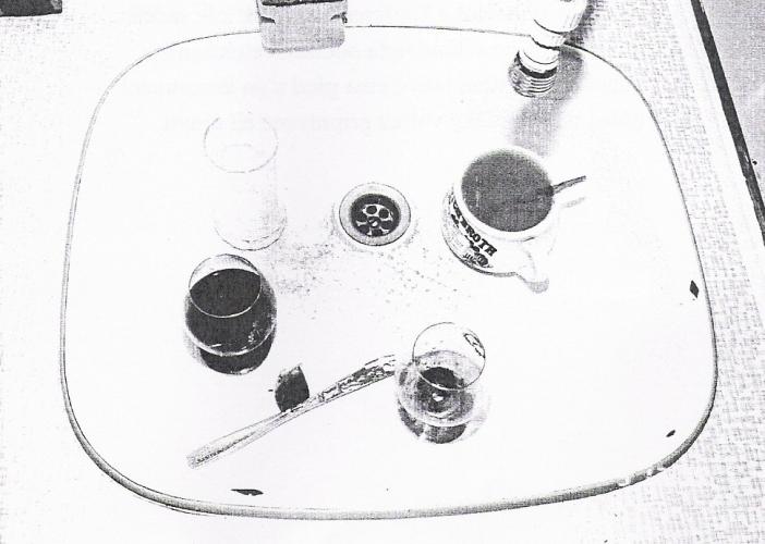 Policejní fotografie stop, zajištěných na místech činu. Na sklenicích a hrncích byly zajištěny mimo jiné stopy po rohypnolu. Foto Policie ČR