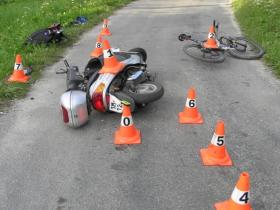 K dopravní nehodě s těžkým zraněním došlo v neděli 12. července ve večerních hodinách. 37letá řidička skútru pravděpodobně nezvládla řízení stroje a v zatáčce na zadní cestě v obci Vápenná dostala smyk. Stroj sklouzl po vozovce do druhého jízdního pruhu, kde se čelně střetl s právě projíždějícím 37letým cyklistou. Muž na kole již střetu nedokázal zabránit. Žena utrpěla lehké zranění, ale cyklista na tom byl hůř. Utrpěl těžké poranění v oblasti hlavy a páteře. Po převozu do Jesenické nemocnice musel být dále transportován do Fakultní nemocnice v Olomouci.