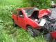 Motocykl narazil do vozidla, lavičky a obrubníku