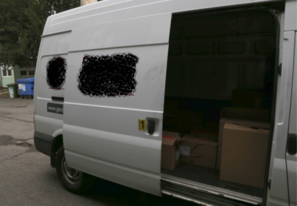 Foto poškozeného vozidla převážející tabákové výrobky Foto poškozeného vozidla převážející tabákové výrobky