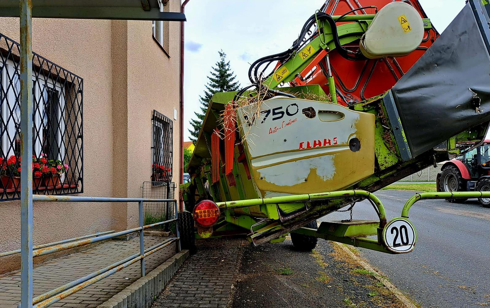 Odpojená žací lišta z kombajnu poškodila objekt policie